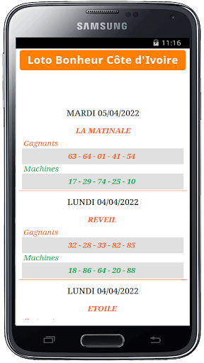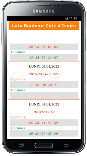Loto Côte D'Ivoire est une application qui vous permet d'avoir les résultats du tirage du loto aux heures des tirages ainsi que l'historique des résultats passés.