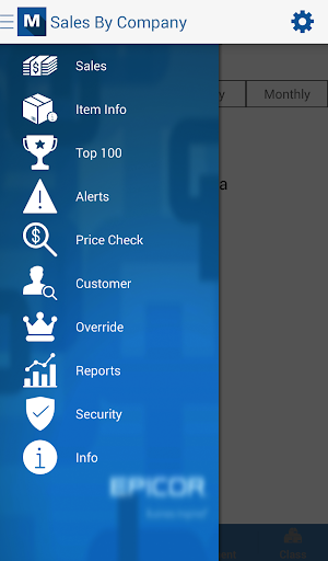 The Epicor Mobile Manager application works in conjunction with Epicor’s Eagle Retail Management Solution. It enables users to view the status of their retail business and make decisions on the go. Eagle Level 21 or higher and Role Based Security are required. Please consult Eagle Online Help for assistance in configuring Role Based Security.