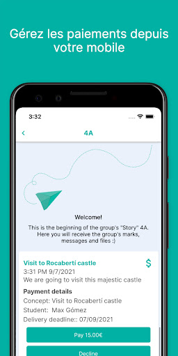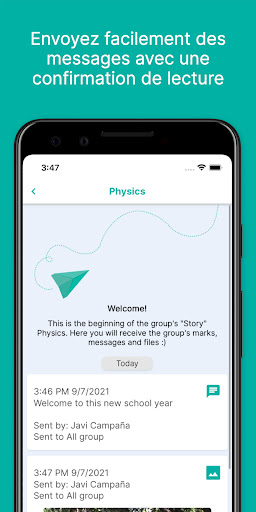 À travers des «correspondance», parents et élèves reçoivent toutes sortes d'informations de la part des enseignants et du centre éducatif avec toutes les actualités en temps réel. Vous aurez la possibilité d’envoyer des messages texte des notes de vos étudiants, des rapports de présence, des événements du calendrier et bien plus encore.
