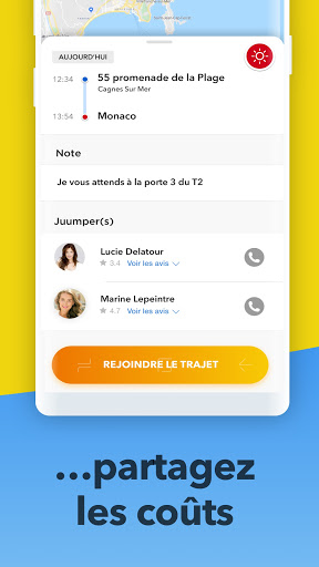 Découvrez l'application JUUMP : le moyen le plus simple de partager un trajet à plusieurs avec les utilisateurs à proximité de vous. Avec Juump vous rentrez IMMÉDIATEMENT en contact avec les utilisateurs qui vont dans la même direction que vous.
