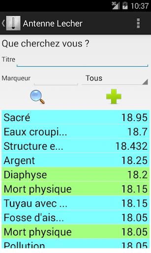 Via celle ci vous pourrez rechercher un marqueur associé à un mot clef. Par exemple, si vous souhaitez connaitre le marqueur du réseau Hartmann, il vous suffit de taper hartmann dans le champ de recherche. L'application, vous donnera alors les valeurs 10.0 et 12.0.