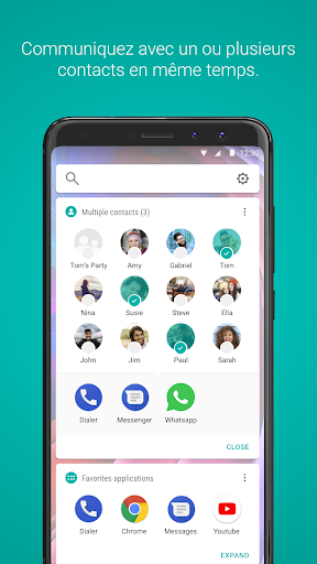 - communiquez avec vos contacts favoris ou récents avec la dernière App utilisée