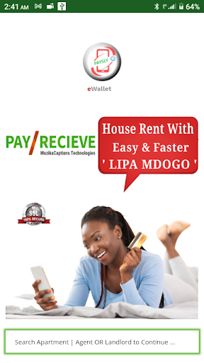 Payez ou recevez votre maison à la maison avec facilité et plus rapidement en utilisant notre système automatisé «Lipa Mdogo».Nous comprenons que l'économie d'argent pour la location jusqu'à la fin du mois est toujours comme impossible à la plupart d'entre nous.Cela est dû à la crise économique.Mais avec PaySly, vous êtes éligible pour payer un loyer partiellement jusqu'à la fin de votre montant de loyer dû par notre application mobile et que vous pouvez également générer un reçu automatiquement pour donner à votre propriétaire ou à votre agent locatif.