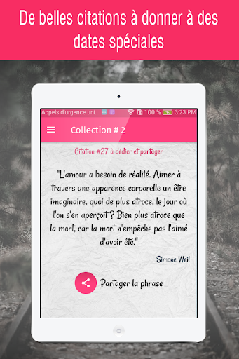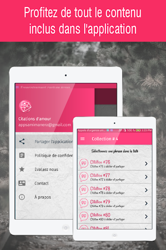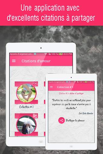 Téléchargez la application citations d'amour, les plus belles phrases et messages d'amour en français, disponible pour les appareils mobiles Android.