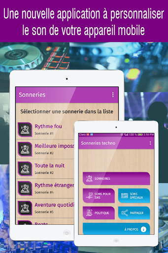 Téléchargez maintenant et complètement gratuit la nouvelle sonneries techno gratuites (sonnerie de telephone) pour personnaliser votre téléphone et profiter de ces nouvelles sonneries gratuites telephone (comprend sonnerie electro), disponible pour les appareils mobiles Android™.