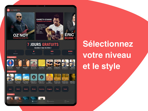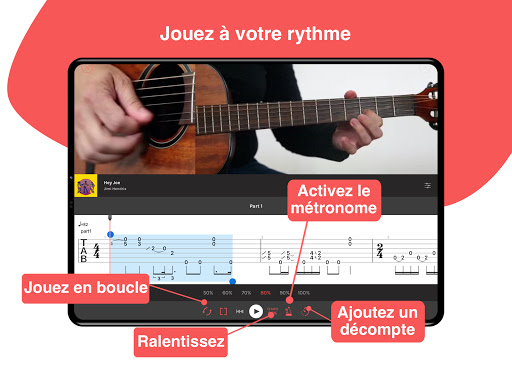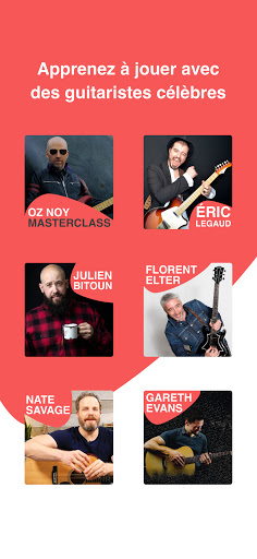 Apprenez à jouer vos morceaux préférés à la guitare grâce à des partitions interactives synchronisées avec des vidéos multi-angles. Suivez les cours et les masterclasses de guitaristes célèbres tel que Oz Noy, Julien Bitoun, Galagomusic, Gareth Evans et Florent Elter.