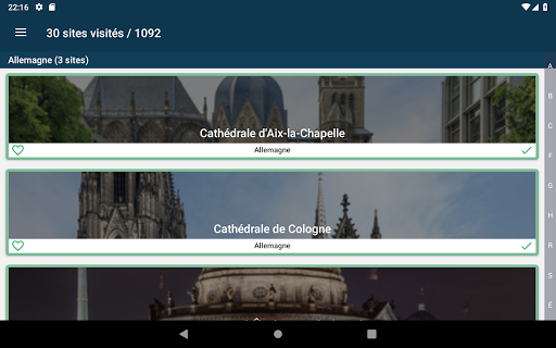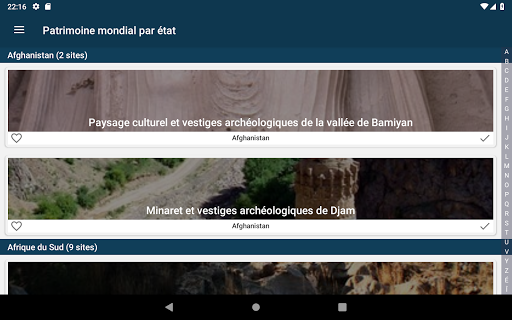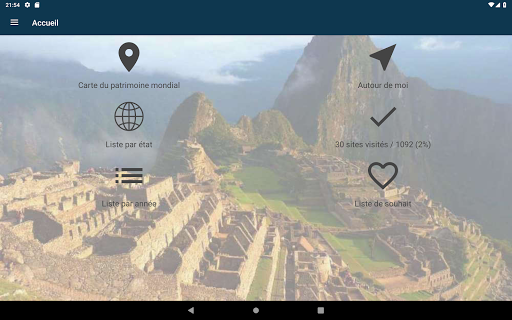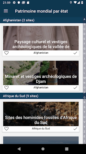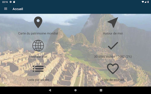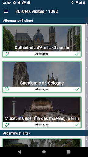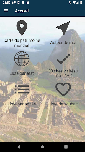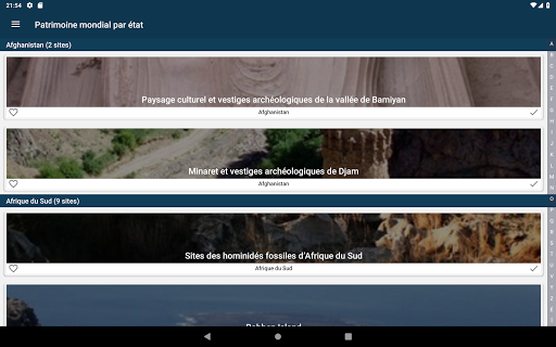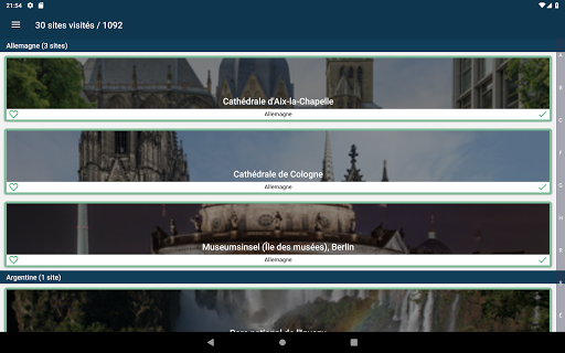 • Possibilité d'indiquer un site comme visité pour avoir la liste de tous les sites du patrimoine de l'Unesco visités