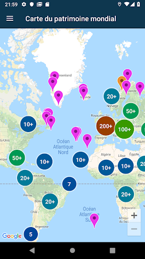Fonctionnalités de l'application World Heritage :