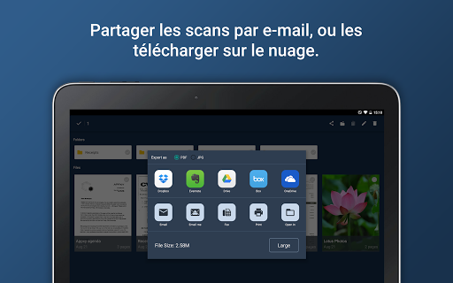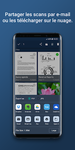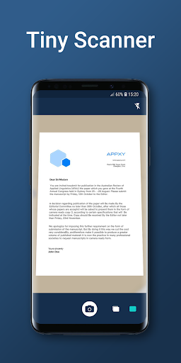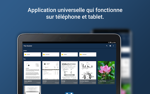 Tiny Scanner transforme votre téléphone en un scanner portable. Les numérisations sont enregistrées sur votre téléphone comme images ou fichiers PDF. Nommez et organisez vos numérisations en dossiers ou partagez-les via: