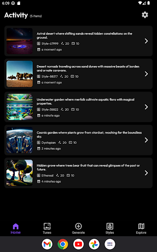 Découvrez un éventail diversifié de styles et de modèles d'art dans Artdeck.Des styles d'art traditionnels aux dessins et au photoréalisme de style anime, vous avez une sélection riche pour expérimenter et trouver la correspondance parfaite pour votre vision unique.