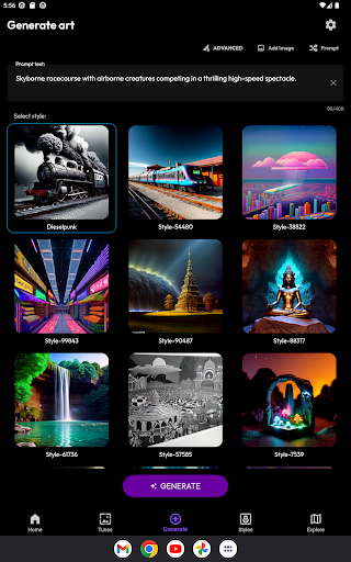 Laissez les défisde la création d'art traditionnelle et entrez dans le futur avec le générateur d'images de l'ARTDeck.Notre technologie AI avancée vous permet de donner vie à votre imagination avec des visuels dynamiques et impressionnants.