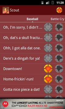 All sound clips associated with Valve's hit character, the Scout, from hit game Team Fortress 2. Clips can be saved to SD card for ringtones or notification tones.