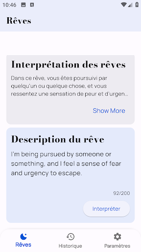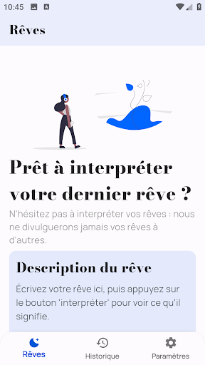 Interface conviviale : L'interface de Dream Snap est conçue pour être simple et intuitive, ce qui la rend facile à utiliser pour tout le monde. Que vous soyez un analyste de rêves expérimenté ou que vous débutiez tout juste, Dream Snap est l'outil parfait pour débloquer les secrets de vos rêves.