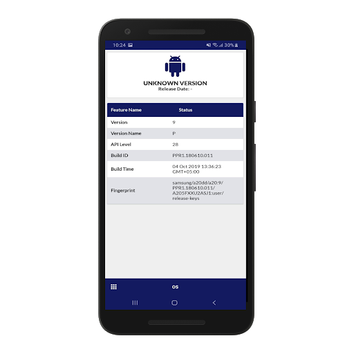 Operating System(OS) Info: Version, Verson Name, API Level Build ID, Build Time, Fingerprint etc