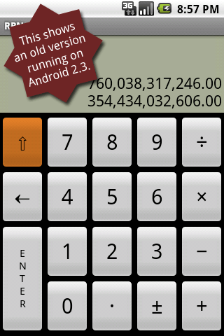 Version 2.0 added a redesigned Holo UI and requires Android 4 (Ice Cream Sandwich). It also added a square root function. Version 1.x is still available for older phones.