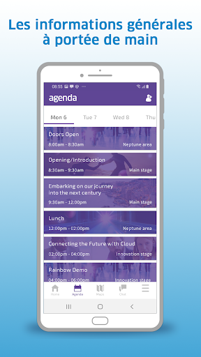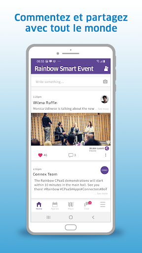 Cette application a été créée par Alcatel-Lucent Enterprise. Obtenez votre propre application Rainbow™ Smart Event personnalisée pour votre entreprise. Rainbow™ Smart Event crée des canaux de communication pour aider les organisateurs d'événements à mettre en place des événements exceptionnels et à fournir de la valeur longtemps après le discours de clôture.