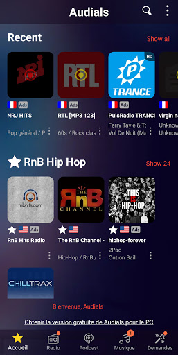 Audials Radio Pro est la seule application radio pour les smartphones et les tablettes qui trouve la station de radio pour l’enregistrement de chaque souhait musical parmi des milliers de radios en ligne surveillés avec le réseau de Audials Radio. Seul Audials Radio Pro a l’enregistreur de radios avec la liste de demandes connu du logiciel Windows. En plus, l’application contient des podcasts!