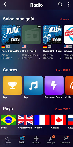 Profitez de la plus grande sélection de 100.000 stations de radio avec 82 genres musicaux