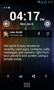 AVG Swipe Lock Screen Launcher is conveniently divided into three simple screens: the main screen that shows recent calls and messages, your favorite widget, and Facebook feeds. Easily switch between these screens with just a swipe.