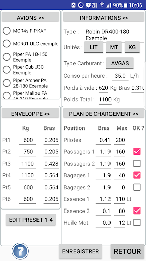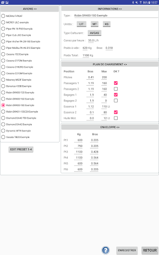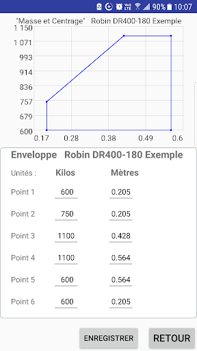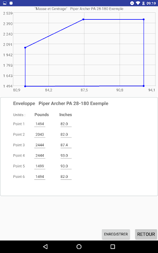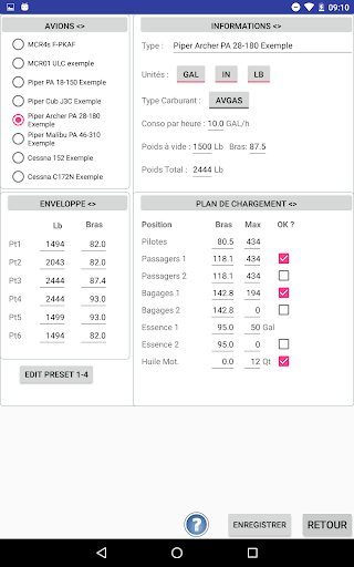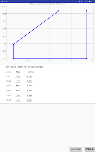Détermination simple et visuelle de la position du centre de gravité d'un avion en fonction de son chargement et de l'enveloppe de vol.