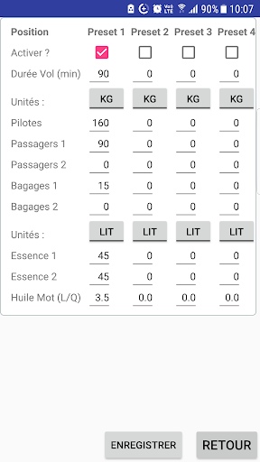 Entrée des données de chargement facilitée par curseurs et 4 préréglages