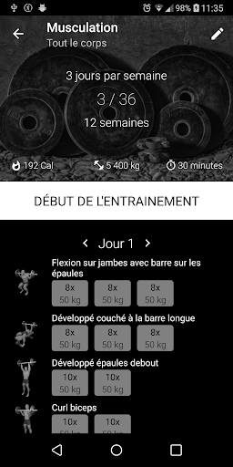 Développez vos muscles et gagnez en force grâce à votre programme d'exercices de musculation.