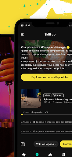 Une plateforme unique, qui vous encourage à améliorer vos compétences et votre talent, vos connaissances et votre service. Avec l’application mobile, apprenez et grandissez à votre rythme : juste avant un shift, dans les transports en vous rendant au travail ou à la maison, vous décidez !