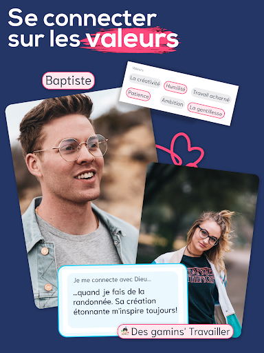 Pour rejoindre SALT, les Catholiques et Chrétiens célibataires locaux s'inscrivent via Facebook, Google ou e-mail et remplissent un profil. En permettant aux utilisateurs de décrire leur foi, nous donnons aux Chrétiens célibataires un moyen pratique d'identifier les meilleures rencontres avec lesquelles ils peuvent trouver une connexion. L’application de rencontre Chrétienne SALT vous connecte avec des utilisateurs Chrétiens - cliquez simplement sur le cœur (oui) ou la flèche de saut (non) pour aimer d'autres Chrétiens célibataires géniaux. S'il y a un intérêt mutuel, SALT met en relation les membres qui peuvent alors utiliser l'application pour chatter et, s'ils s'entendent, se rencontrer en personne!