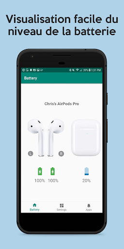 PodAir - AirPods Battery Level permet aux utilisateurs d'Android de visualiser simplement et facilement le niveau de la batterie dans leurs Apple AirPods et leur étui.