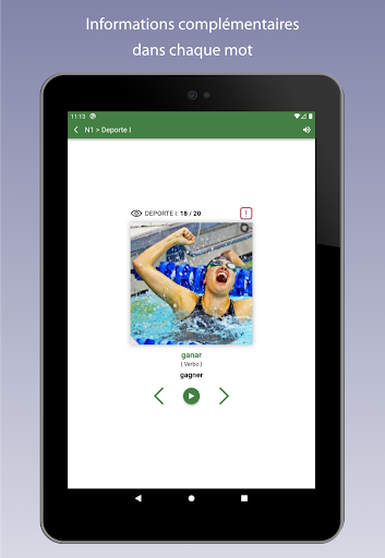 Application gratuite pour apprendre l'espagnol en améliorant votre vocabulaire rapide et facilement, avec plus de 5 000 mots triés par niveaux et thèmes.