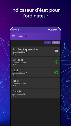 Utilisez WolOn pour démarrer ou réveiller votre ordinateur à partir de votre réseau domestique (Wake on LAN) ou sur Internet (Wake on WAN).