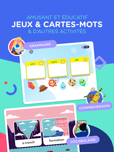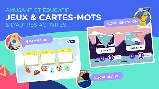 - Des jeux éducatifs amusants, créés par des enseignants avec une présentation légère et des commentaires encourageants pour motiver les apprenants.