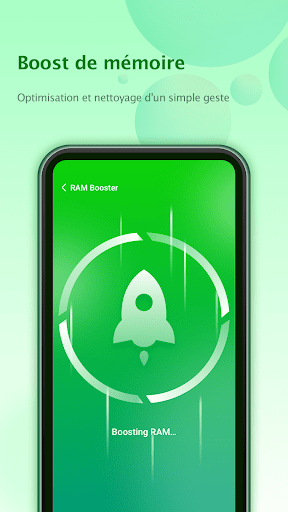 Nettoyage des fichiers inutiles : supprime les fichiers inutiles de la mémoire de votre téléphone, effectue un nettoyage en profondeur, libère de la RAM, optimise l'utilisation de la RAM
