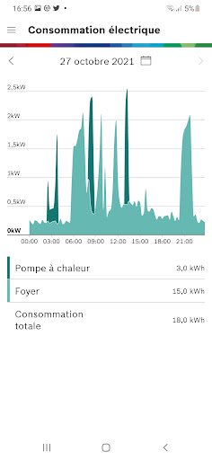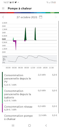La pompe à chaleur utilise l’énergie solaire peu couteuse pour le chauffage et l’eau chaude sanitaire et est activée par modulation, en fonction du surplus d’énergie photovoltaïque.