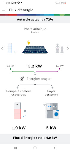 Grâce au gestionnaire d’énergie intelligent de Bosch, l’utilisation de l’énergie solaire autoproduite devient pour vous simplement encore plus économique et écologique. Il monter les influences énergétiques dans la maison, optimise la consommation électrique et l’accumulation de votre maison, complétant ainsi votre Smart Home.