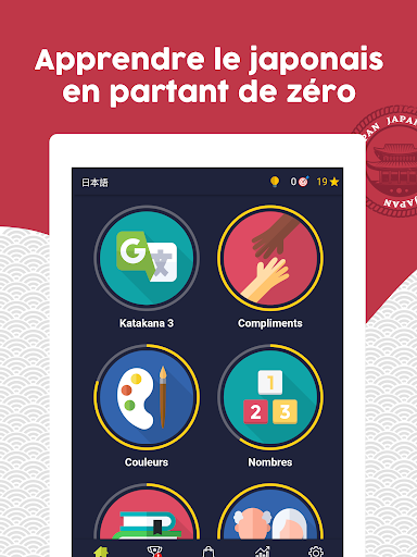 + Apprenez le japonais de manière ludique et agile: apprenez tout en vous amusant, l'application a été développée sous forme de jeu pour apprendre le japonais rapidement et facilement.
