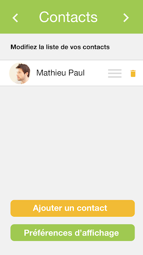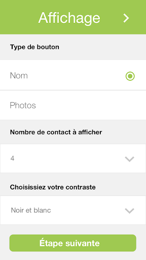 En quelques clics, ajoutez les contacts de votre choix, choisissez les couleurs adaptées à la vision de l'utilisateur et le nombre de contacts à afficher sur l’écran d'accueil (1 à 12).
