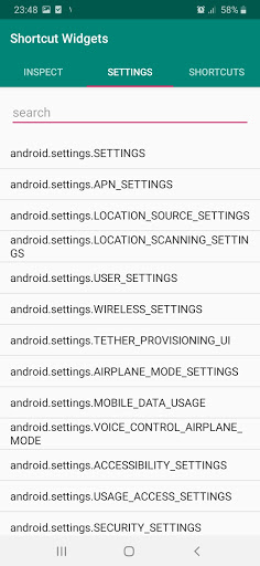Shortcuts to all possible activities (pages) in your phone.