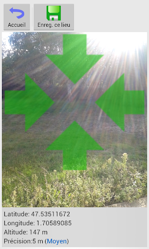 Après avoir enregistré des lieux, l'application vous permet de les retrouver en toute simplicité: elle vous montre la direction à suivre (en ligne droite) et vous informe de la distance restant à parcourir en temps réel. Vous n'avez qu'à vous laissez guider.