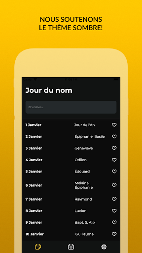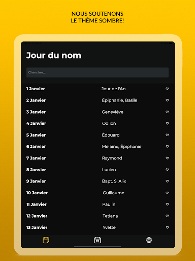 L'application propose des jours de nom dans plusieurs pays: