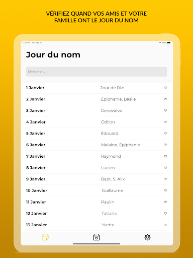 Application gratuite avec calendrier nom jour. Désormais, vous n'oublierez plus jamais le jour du prénom de vos proches. Surprenez vos amis et votre famille en vous rappelant également le jour de leur prénom, pas seulement les anniversaires grâce à Facebook. Appelez-les le jour de votre nom et souhaitez-leur à tous!