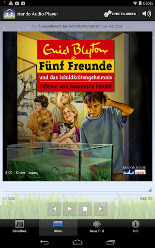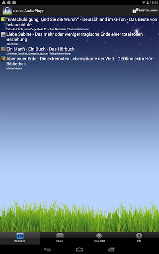 In der „Bibliothek“ finden Sie eine Übersicht aller Audiobooks, die Sie bereits heruntergeladen haben. Wählen Sie nun das gewünschte Audiobook zum Anhören aus. Durch längeres Tippen auf das Audiobook können Sie auch direkt ein Kapitel auswählen oder das Audiobook aus der Bibliothek löschen.