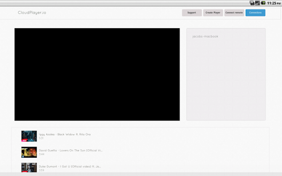 simply open the cloud player app and turn your phone/pc/tablet into a player (it works best when plugged into some speakers). Now all of your friends can connect to it and add of their favourite songs/videos to the players queue with absolute ease.