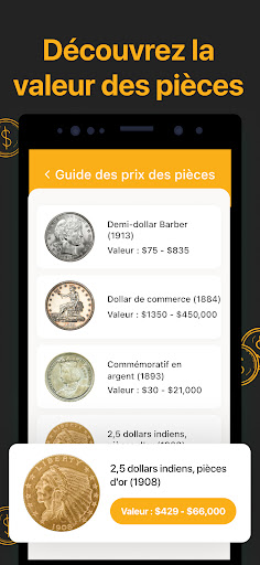 Prenez une photo pour identifier avec précision tout type de pièce avec les spécifications numismatiques, découvrez les pays, les détails des prix et les informations historiques.