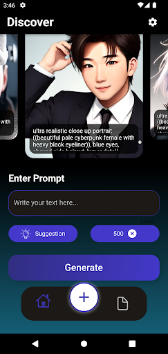 1: Invite d'entrée ou sélectionner l'invite de suggestion pour décrire ce que vous souhaitez créeret sélectionnez générer.L'image AI sera générée.