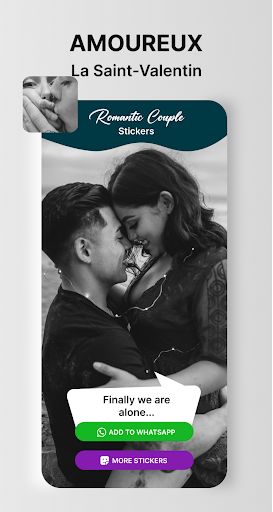 Les nouveaux autocollants romantiques WA apprécient l'exprimer votre sentiment avec de jolis autocollants et de beaux autocollants de couple gratuits.Cette meilleure application WA Stickers vous fournira une façon différente de proposer votre fille et de montrer facilement le sentiment pour l'amour du couple.Maintenant, envoyez d'énormes emojis d'amour en cette Saint-Valentin pour exprimer votre amour pour votre partenaire.Cette nouvelle application d'autocollants 2023 a une collection d'autocollants Emoji HD et aime les autocollants en couple pour les ajouter à votre chat.Meilleurs autocollants de chat application 2023 et autocollants de collection emoji gratuits.