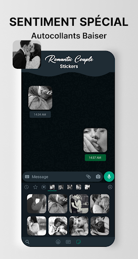 Par des mots, aucun problème n'envoie simplement des autocollants Kiss pour leur partenaire et en profiter.Application d'autocollants de couples WA