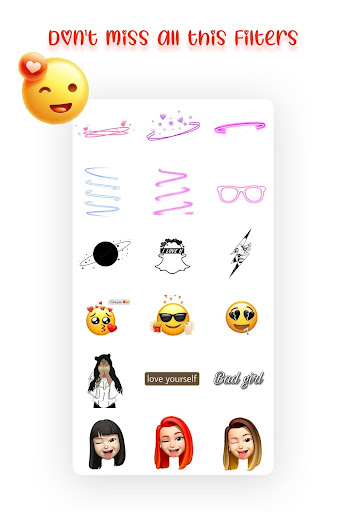 📷Countless collection of cute stickers to add and best emoji camera to use.