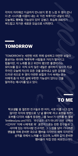 각자의 자리에선 지금까지 만나보지 못 한 느낌 두 명이 만나 더 큰 시너지를 이끌어 내는 곡 '지친 하루지만 내일이 아닌 오늘에도 행복할 가능성이 있어' 강봉근, 최승희 (B&H)가 부드럽고 차가운 새로운 모습으로 시작한다.