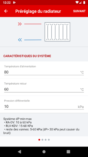 Réglez correctement la puissance thermique du système en calculant le débit, suivant le type de vanne, le réglage de la poignée de la vanne et la pression mesurée.